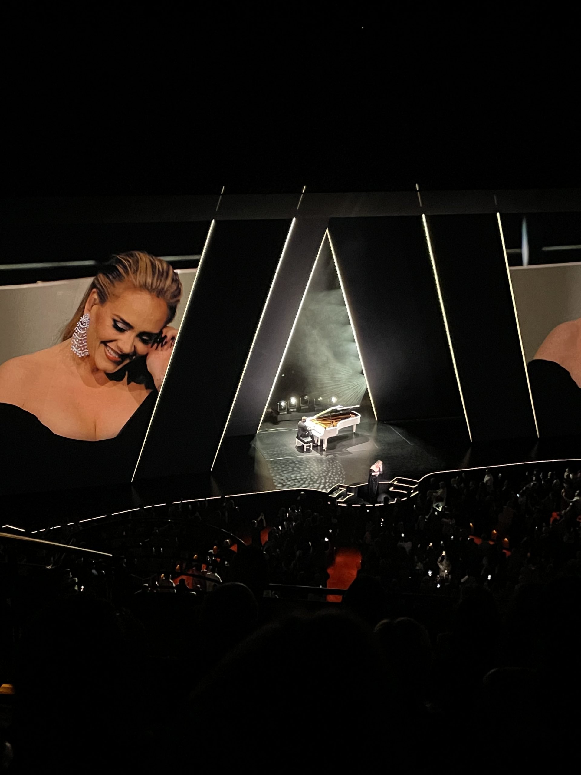 I first saw Adele at her 25 tour at the Staples Center in Los Angeles, CA in 2016 where she sang to over 12,000 people. Now seeing her in a room filled with 4,300 other daydreamers, this residency sees the singer be more vulnerable and comfortable on stage.