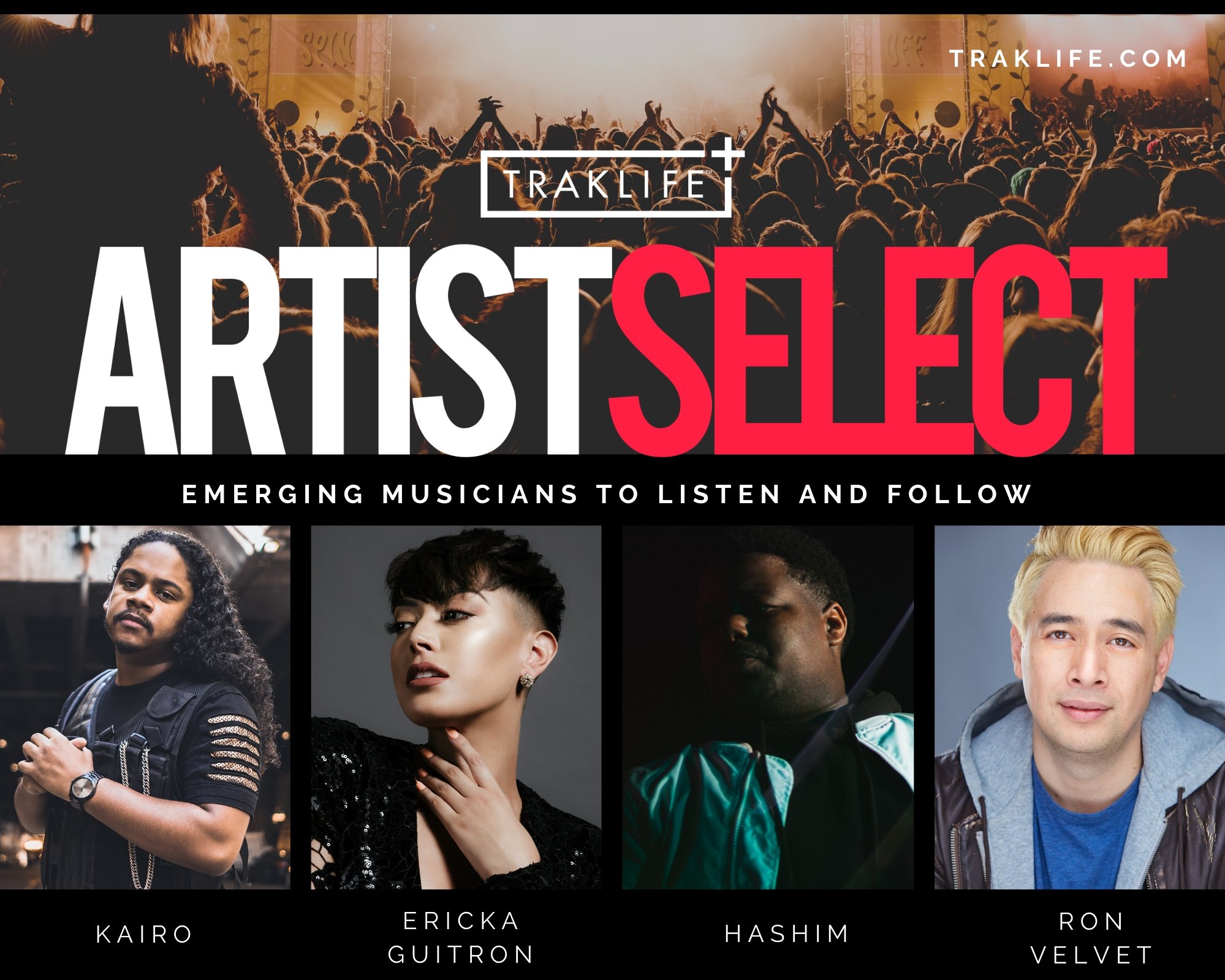 Traklife ARTIST SELECT is a monthly curation of talented artists emerging their way into today’s music scene. For the month of April we’ve selected Hashim (@jibrihashim), Ron Velvet (@ronvelvet), Ericka Guitron (@erickaguitron) and Kairo (@kingkairomusic). Stay tuned throughout April for more info and media highlighting this months selection.